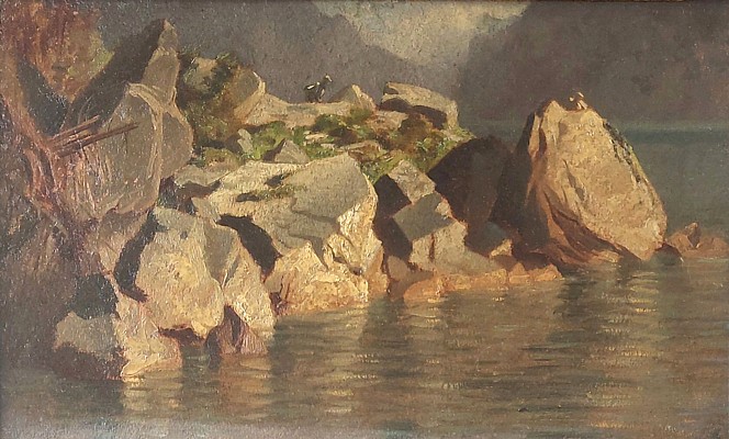 Vente d'un dessin au crayon rehaussé à l'huile "La Nautique" au bord du lac Léman