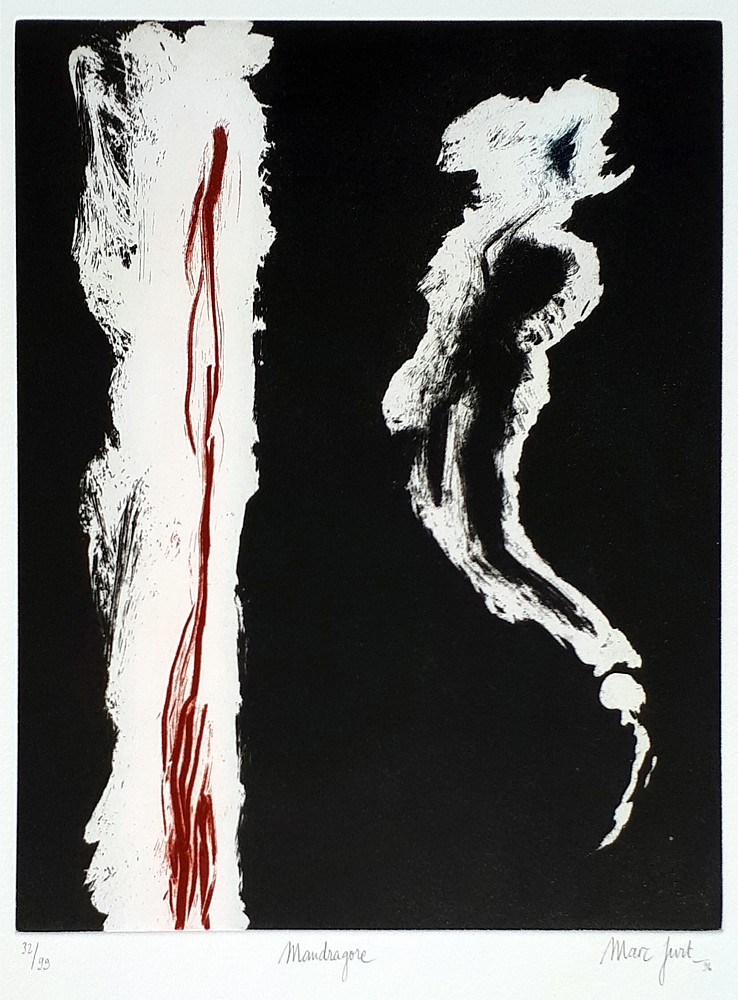Ecoles et maturité scientifique à Neuchâtel. Ecoles des Beaux-Arts à Genève (1974-1978).. Marc Jurt a exploré toutes les facettes de la gravure, dont il maîtrisait les techniques (eau-forte, pointe-sèche, aquatinte).