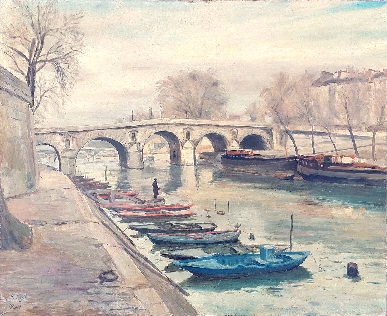 En 1947 Charles Egli s’établit dans le canton de Vaud, tout d’abord à Nyon. Puis, pendant deux ans il effectue des études à Paris: à l’académie Fernand Léger, à l’académie de la Grande Chaumière, puis devient élève libre à l’Ecole nationale supérieure des Beaux-Arts. II peint alors la vie des Halles, les rues de Paris et leur animation, les bords de la Seine.