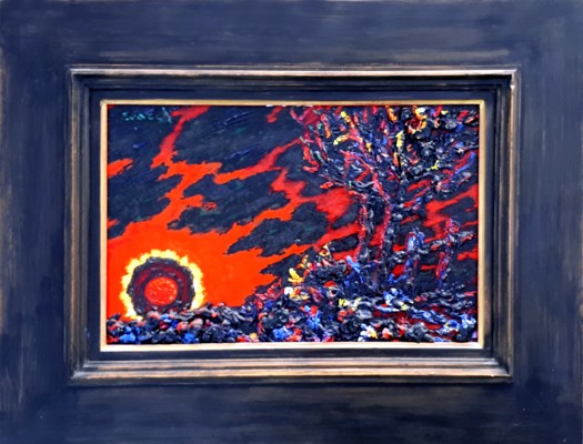 Ce tableau est difficile à photographier car le vernis est brillant avec des empâtements