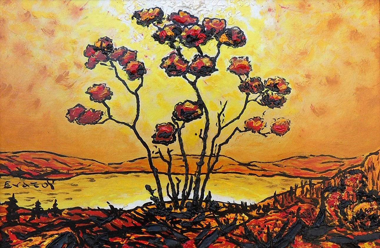 Cela n'empêche pas ce passionné de planter jusqu'aux ultimes moments de sa vie, achevée en 1972, ses paysages aux pâtes lourdes incandescentes de ciel. Au centre d'un soleil qui défie et se confie au-delà du bon goût, n'ose-t-il pas, cet insensé, poser sa signature en remous de ruisseau ?