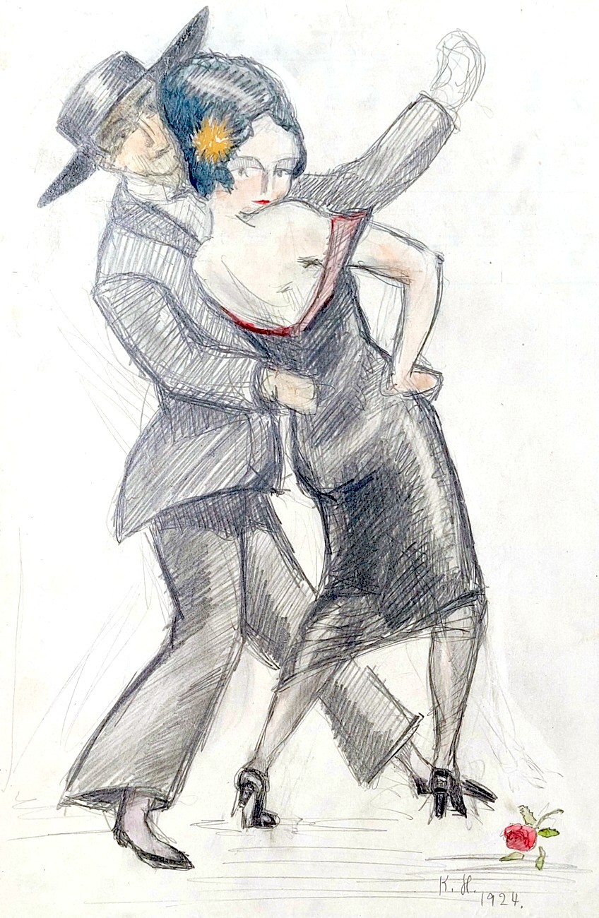 Dessin préparatoire avec des rehauts d'aquarelle - 1924.