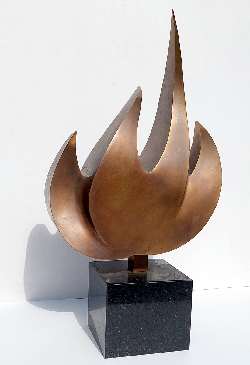 "Pour le bronze fait à partir d'une sculpture en bois il faut d'abord éliminer tous les défauts à la lime, à la toile d'émeri, par soudures. Ensuite on peut polir ou laisser brut. Si on laisse la pièce comme çà, elle s'oxyde d'elle même par l'air du temps. Mais au lieu d'attendre deux, trois, quatre ans, pour avancer, on la bronze au sulfure d'antimoine et à l'amoniaque. On fait une pâte, un vernis dont on l'enduit, et quand elle est sèche, on la brosse. On laisse plus ou moins longtemps et on répète l'opération une ou deux fois selon l'effet désiré. Çà donne la même patine, à peu près, que le temps... On peut aussi bronzer noir, noir ébène, repolir les angles or. Extraordinnaire."