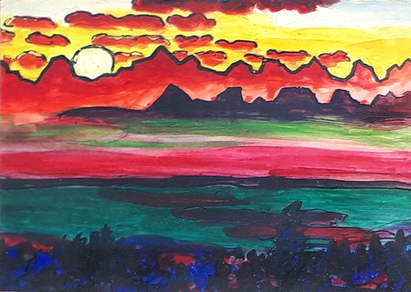 Cela n'empêche pas ce passionné de planter jusqu'aux ultimes moments de sa vie, achevée en 1972, ses paysages aux pâtes lourdes incandescentes de ciel. Au centre d'un soleil qui défie et se confie au-delà du bon goût, n'ose-t-il pas, cet insensé, poser sa signature en remous de ruisseau ?