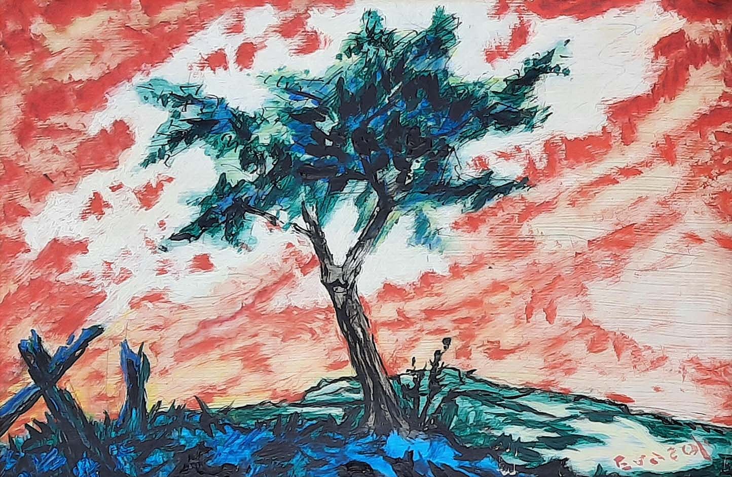 Cela n'empêche pas ce passionné de planter jusqu'aux ultimes moments de sa vie, achevée en 1972, ses paysages aux pâtes lourdes incandescentes de ciel. Au centre d'un soleil qui défie et se confie au-delà du bon goût, n'ose-t-il pas, cet insensé, poser sa signature en remous de ruisseau ?