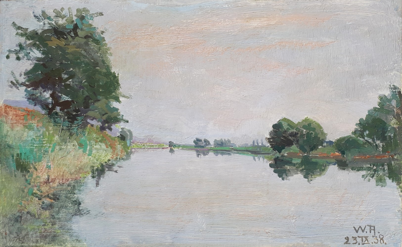 A vingt-six ans, il peint ses barquiers déchargeant des pierres, sa plus grande scène lacustre. Le bas-lac, la région de Thielle sont les sources de son inspiration; des barquiers, des pêcheurs, des saisons naissent ses thêmes principaux.
