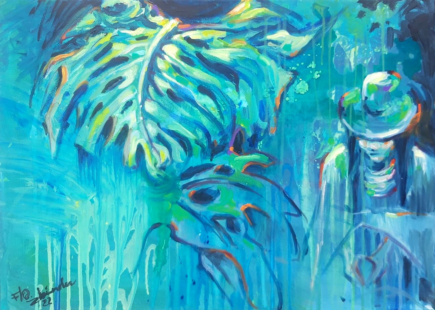 « La peinture est devenue mon exutoire, mon moyen de lâcher prise. Je laisse seulement mon intuition et mes sentiments me guider à travers les formes et les couleurs. J’ai besoin d’exprimer, parfois de crier, un monde intérieur, mes émotions, des paysages imaginaires en m’inspirant de la nature et parfois du monde de l’esprit. »