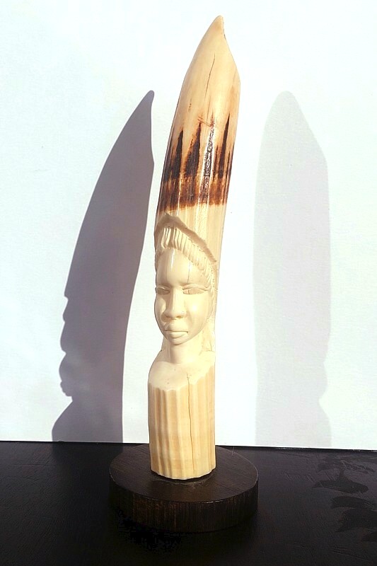 Pointe de défense en ivoire sculpté