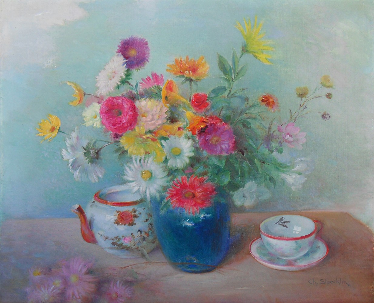 On lui doit des portraits, des paysages, des natures mortes et des fleurs. Charles Stoecklin a exposé au Salon de Paris.