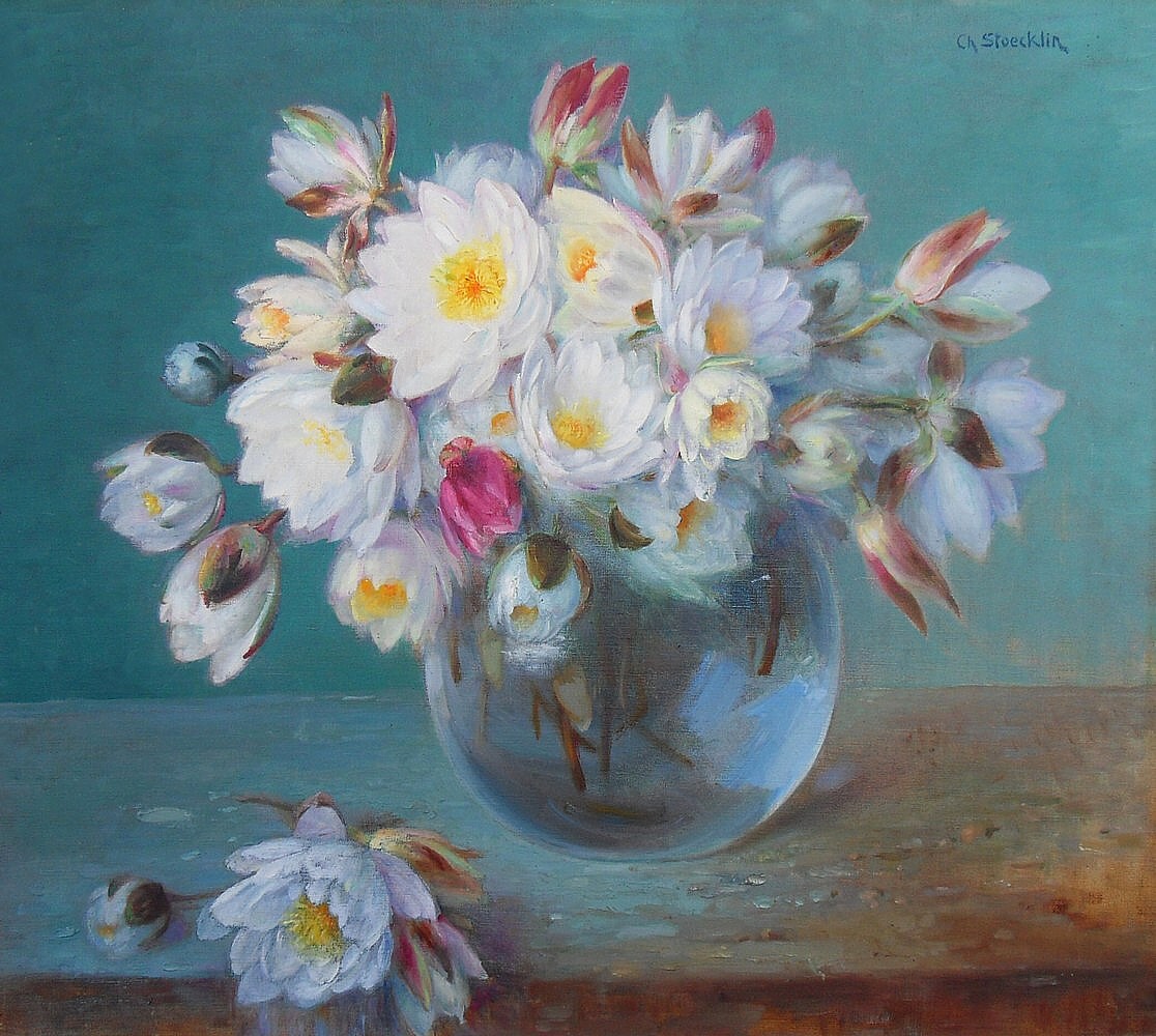 On lui doit des portraits, des paysages, des natures mortes et des fleurs. Charles Stoecklin a exposé au Salon de Paris.