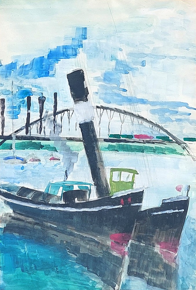 Bateaux à vapeur devant pont métallique
