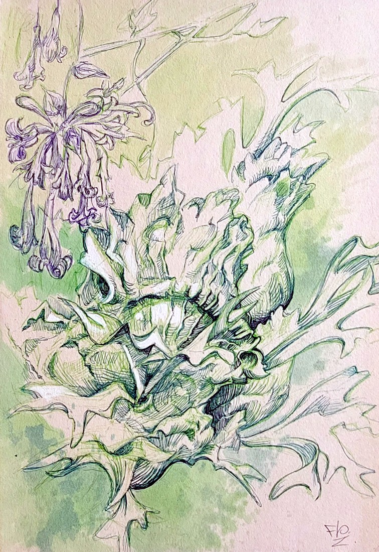 « La peinture est devenue mon exutoire, mon moyen de lâcher prise. Je laisse seulement mon intuition et mes sentiments me guider à travers les formes et les couleurs. J’ai besoin d’exprimer, parfois de crier, un monde intérieur, mes émotions, des paysages imaginaires en m’inspirant de la nature et parfois du monde de l’esprit. »