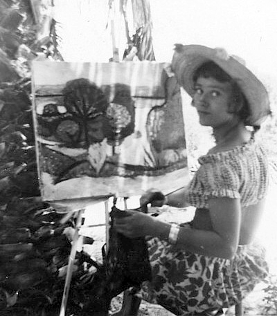 Annelies Nelck en train de peindre un paysage, Vence, ca. 1946