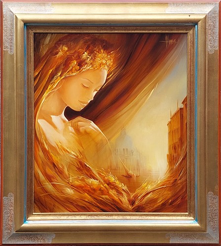 Ses oeuvres sont peintes à l'huile et réalisées avec de nombreuses couches de glacis.