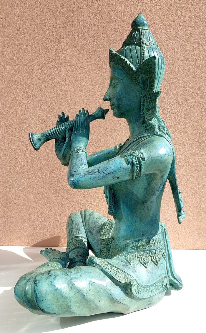 jouant de la flûte en position assise