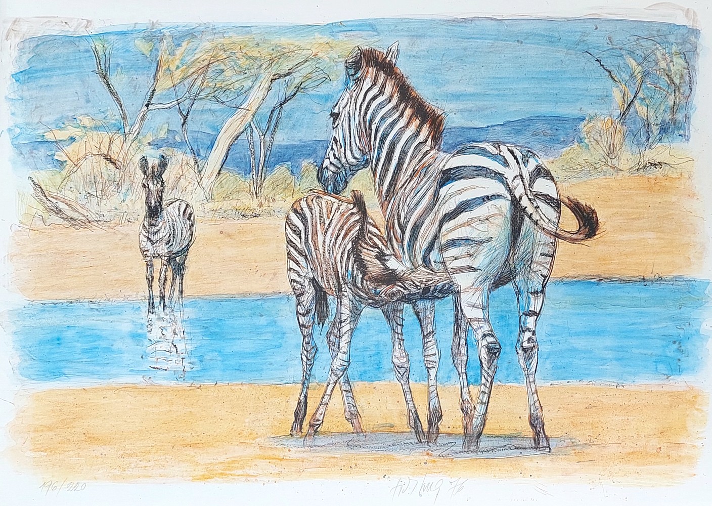 1967 he exhibited city-scapes in the Tryon Gallery in London, but was devoting most of his time toward painting animals.  In this same year the World Wild Life Fund (WWF) approached him with the request to paint a number of endangered species: a task which required enormous artistic ability as well as zoological knowledge. The first hundred works which were presented in september 1970 in the Helmhaus of Zurich were greeted with wide acclaim. A measure of Hug's talent was the acquisition of one of his paintings by the Royal family of England.