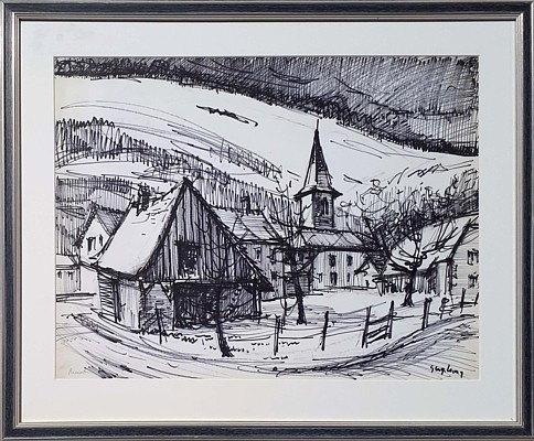 Oeuvre vendue avec un cadre récent (avec vitre et passe-partout)