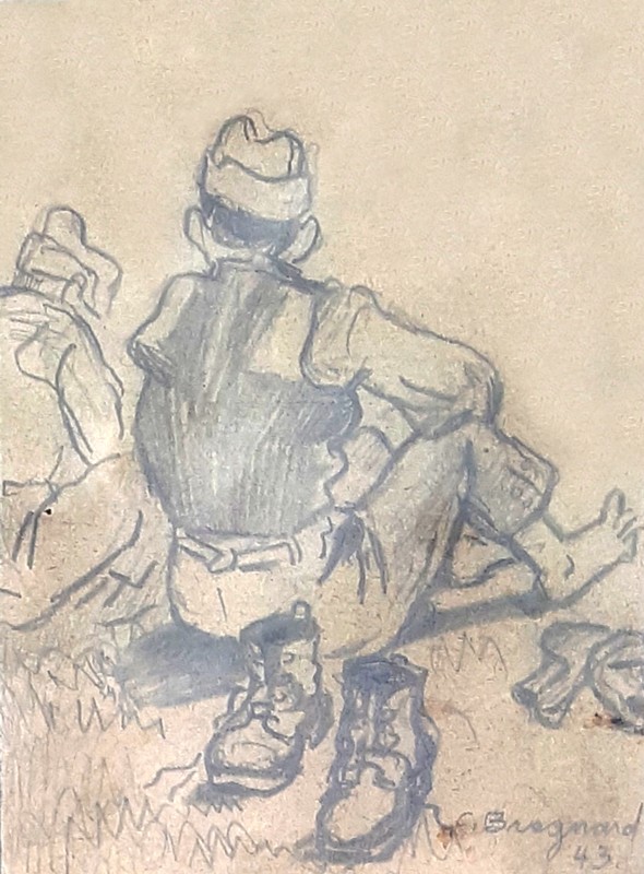 Dessin sur papier de couleur (ocre-clair) lors de sa mobilisation