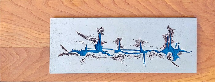 Oeuvre fixée sur un panneau de bois avec deux vis (voir photo du verso de la plaque)