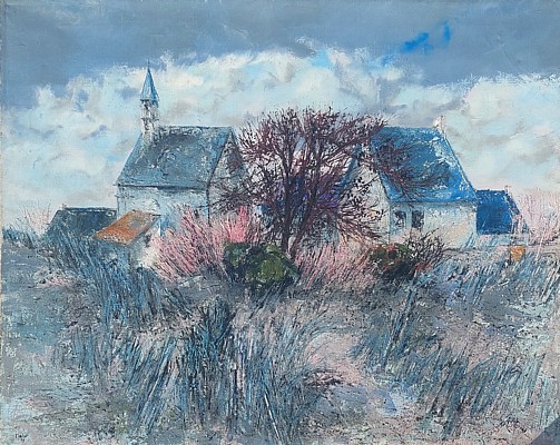 NOLOT Pierre (1935) Vente d'un tableau daté de 1969 «Eglise sur l'île de Batz en Bretagne»