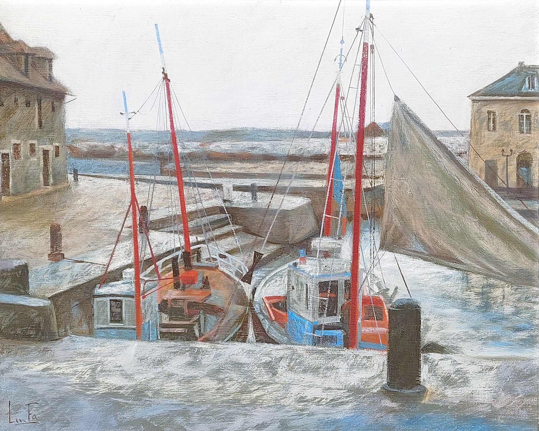 Peintre chinois de paysages urbains, intérieurs, natures mortes, marines, compositions animées. Son style tend vers la figuration onirique.