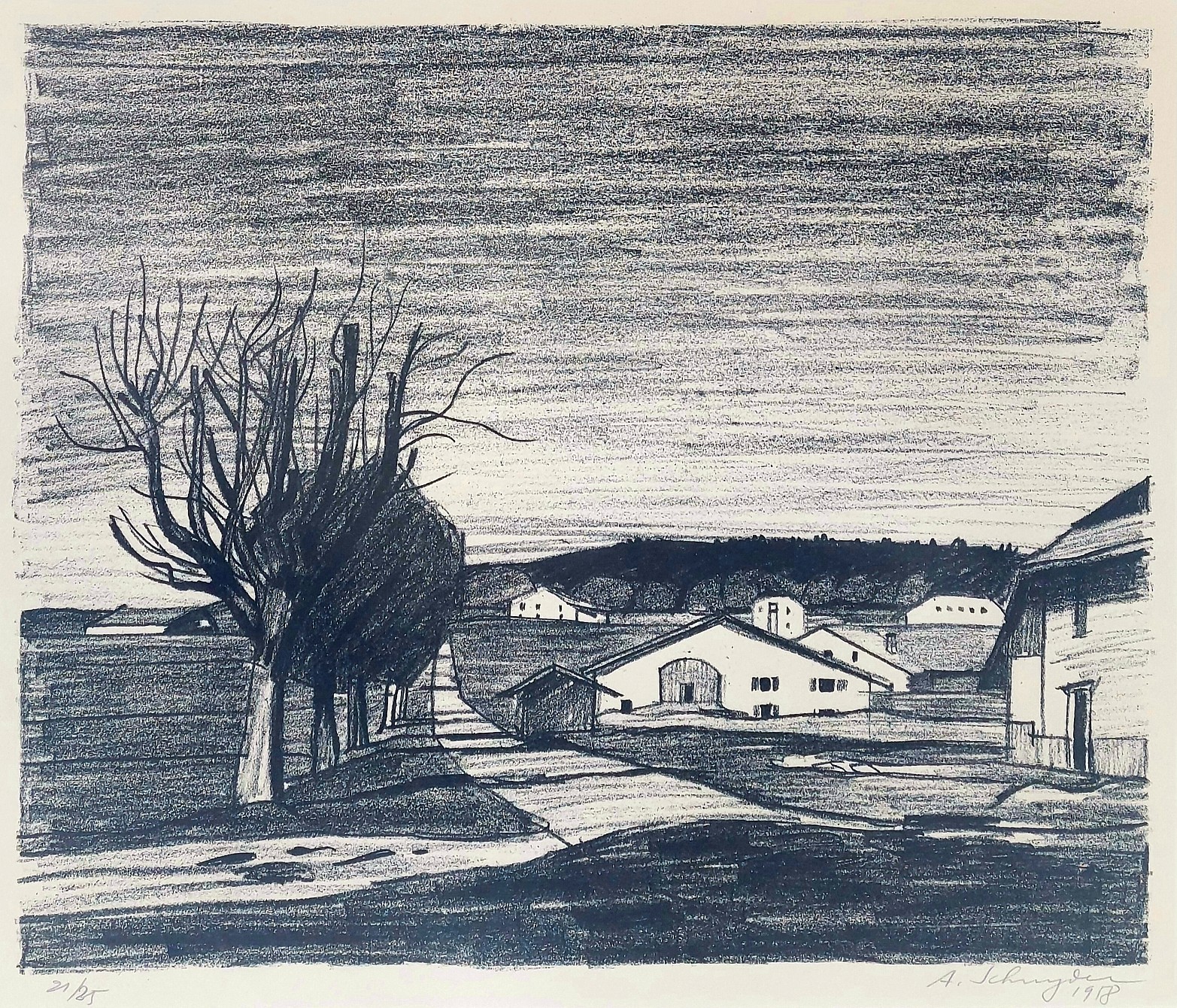 Revenu à Delémont en 1924, Albert Schnyder se mit à peindre des paysages jurassiens, en créant un style figuratif caractéristique. En dehors des paysages, ses motifs de prédilection furent des personnes de son entourage. Avec René Auberjonois, il représenta la Suisse à la Biennale de Venise de 1948.
