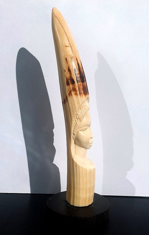 Pointe de défense en ivoire sculpté