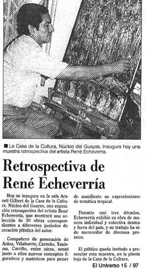 (...) Contemporain d'Aráus, Villafuerte, Carreño, Yaulema, Carrillo et d'autres, il a développé avec eux de nouveaux concepts figuratifs et matériels pour mettre en valeur son expressionnisme à thématique tropicale.