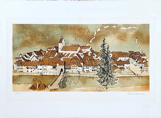 Pendant 50 ans, l'artiste franc comtois réalise, parallèlement à son œuvre de peintre, de nombreuses lithographies. Celles-ci, au format allongé et représentant des paysages jurassiens, constituant sans doute la partie la plus populaire et la plus connue du travail de l’artiste Franc-Comtois. Pourtant la production de Pierre Bichet, couvrant plus d’un demi-siècle révèle une œuvre riche, complexe qui emmène parfois le spectateur loin des paysages Jurassiens.