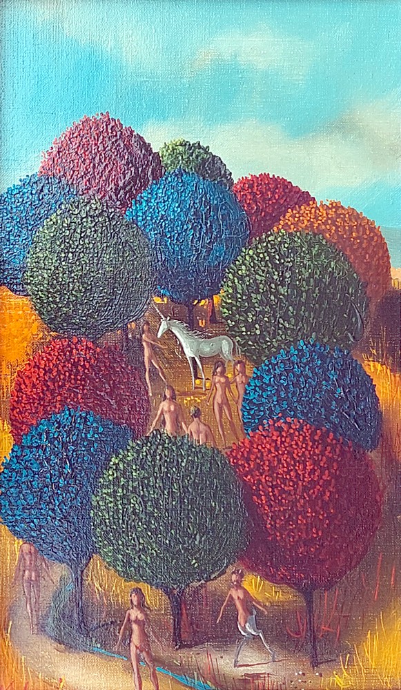 Une biographie a été dédiée, dès 1977, par un grand expert américain en Art contemporain Thomas M. Bayer; qualifiant de «Surrealism and the absurd» l’œuvre de ce peintre, quelque part entre Magritte, Breughel et Bosch.