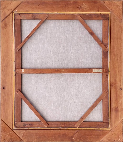 En bon état. Ce tableau a des plissures qui deviennent visibles avec un éclairage rasant.